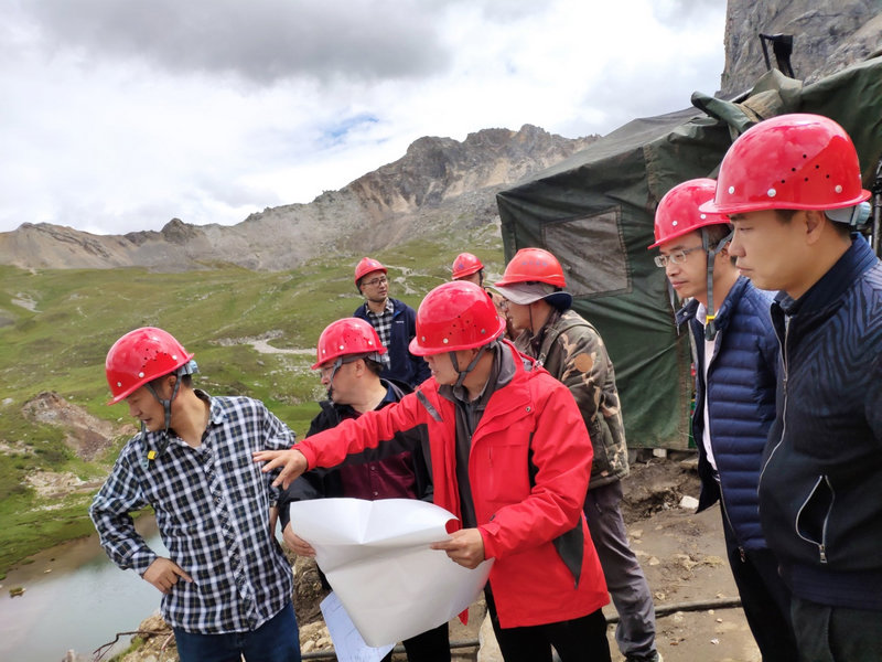 检查组一行10人到达项目驻地后,立即前往项目野外现场开展实地检查及指导。在海拔4900余米的工区现场,检查组分别实地查看了地质剖面、目标体地质特征及走向展布、现场检查指导钻探工程施工,并对进一步的钻孔布设方案进行指导。