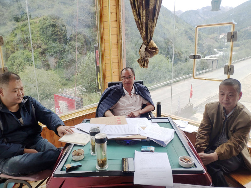 8月11日,受大队委托,区调队检查组前往巴塘县德达乡,对矿勘院承担的巴塘项目进行检查。检查组成员有总工程师王兆成、副队长朱学波、安全管理部副主任张科、技术部谢云喜等。