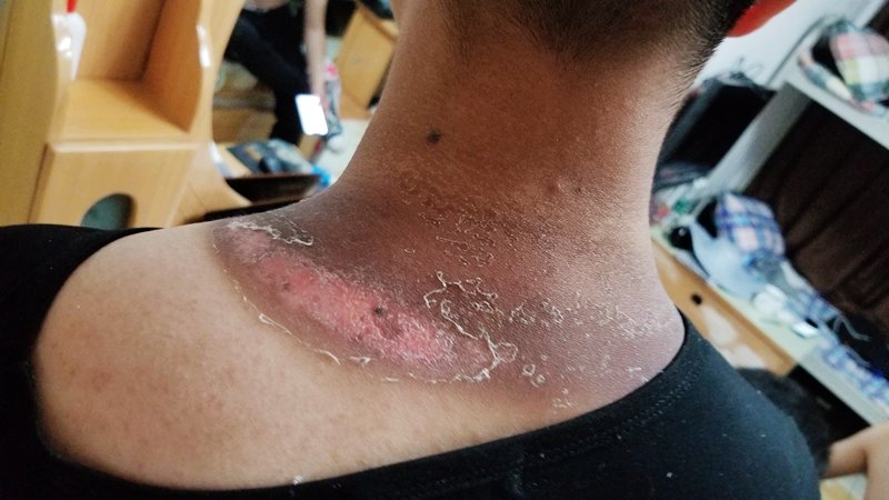 刘晨霄为完成图斑举证任务,脖子上的皮肤晒伤