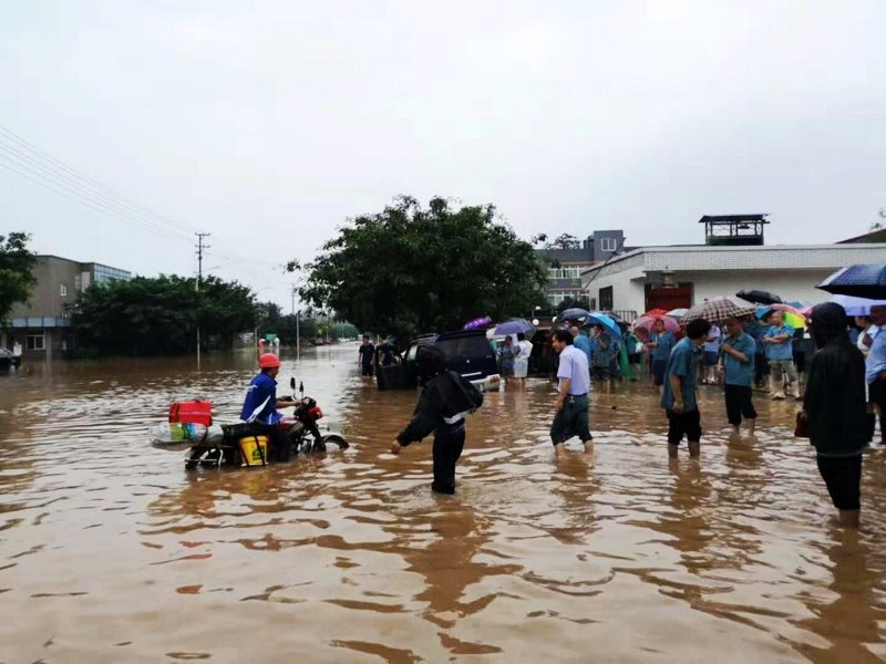 黑云压顶,暴雨如注,7月24日早上8点左右,天府新区核心区域视高镇受暴雨影响严重,多地内涝,多条道路受阻,多车滞留内涝区,视高大道、天府大道南延线部分低洼路段积水严重,导致道路拥堵,部分地段积水已经达到膝盖处,视高基地实验室的食堂处于较低洼处,受灾严重,由于单位车辆已无法直接到达视高基地实验室,为第一时间保护单位财产设施不受大雨影响,测试中心副总工冉杰第一时间下车步行到达视高基地实验室,带领实验室的驻扎员工,立即开始抢险,通过大家不懈努力,排堵保畅通,使实验室未遭受到损失。