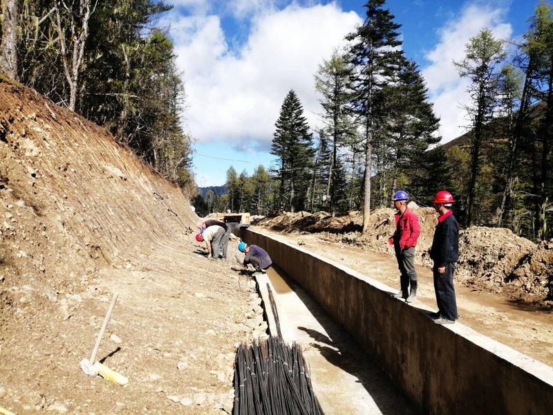 图-木里县容大矿业有限责任公司挖金沟尾矿库右岸潜在地质灾害防治工程施工项目钢筋捆扎现场